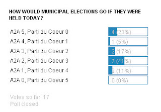 If municipals were held these days. None of the 17 voters thought Berenger's side would get all 5 but 23% believe Ramgoolam would not give up any. 17% thought Alliance du coeur would win 3-2. In my opinion the results will depend a lot on the budget Pravind Jugnauth reads in our Parliament soon.